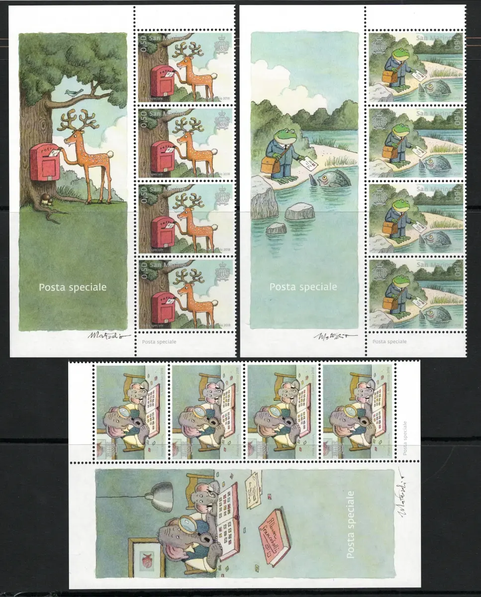 2018 San Marino, Figurierter Eckblock Sonderpost # 193/95 - MNH ** Katalog Eckblöcke Nr. 193/95 Euro 48 - Mappe San Marino 2016 - 17 postfrisch - Vatikan - Sammeln - Philatelie - komplette Jahrgänge - Vatikanstadt