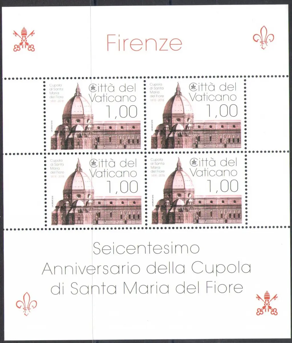 2018 Vatikan, Minifoglio 600. Jubiläumskuppel von Santa Maria del Fiore, neu und perfekt - MNH ** Serie von Gedenkmarken der Vatikanstadt, neu und perfekt, Vollgummi und original.