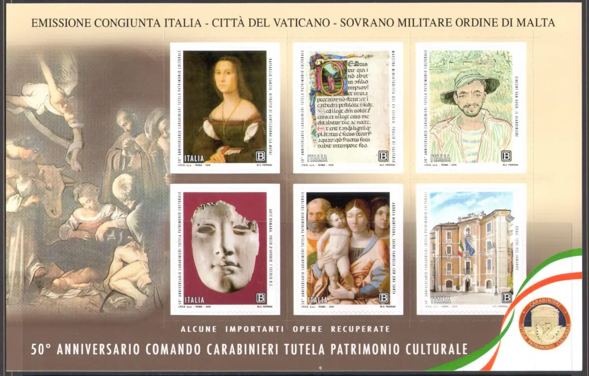 2019 Italien - Republik - Flugblatt Comando Carabinieri - Gemeinsame Ausgabe mit dem Vatikan - postfrisch **
