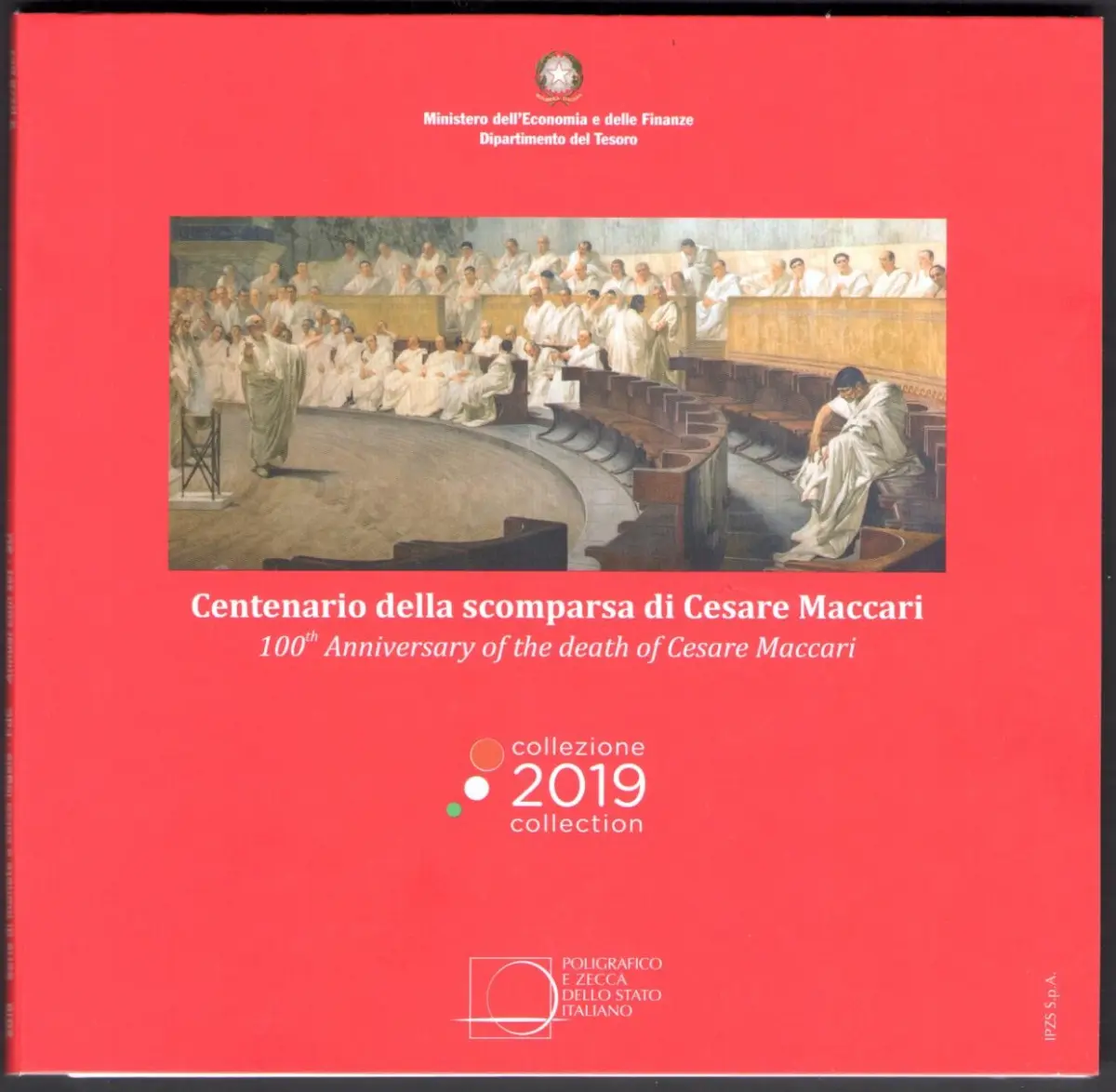 2019 Italien, Italienische Republik, Serie von Cesare Maccari-Münzen 9 Werte - FDC NEU UND PERFEKT IN ORIGINALVERPACKUNG einschließlich 5 Euro Silber Cesare Maccari 1919-2019 Hundert Jahre nach dem Tod.