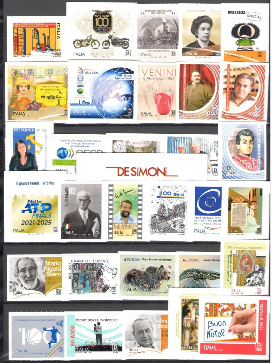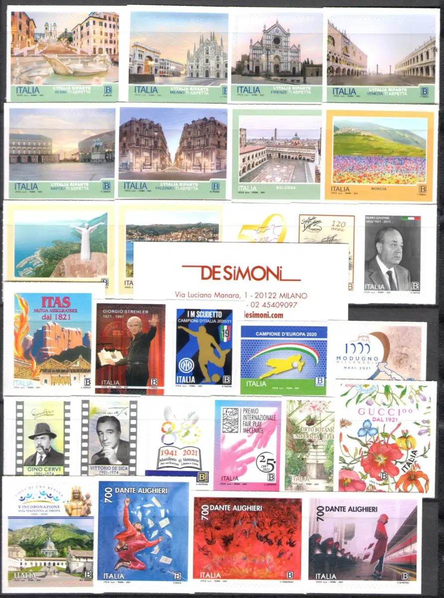 2021 Italien Republik, kompletter Jahrgang, postfrische Marken, 93 Werte + 6 Zettel (inkl. Foglietto Italia Ripart) + 6 Touristische Miniblätter - MNH ** Sammlermarken - Philatelie - Sammler - seltene Briefmarken - Jahrgang Republik - 2021 - touristische Miniblätter - Italien geht wieder