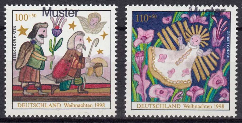 2023-2024 Weihnachten 1998, 2 Werte komplett, Satz mit Muster-Aufdruck