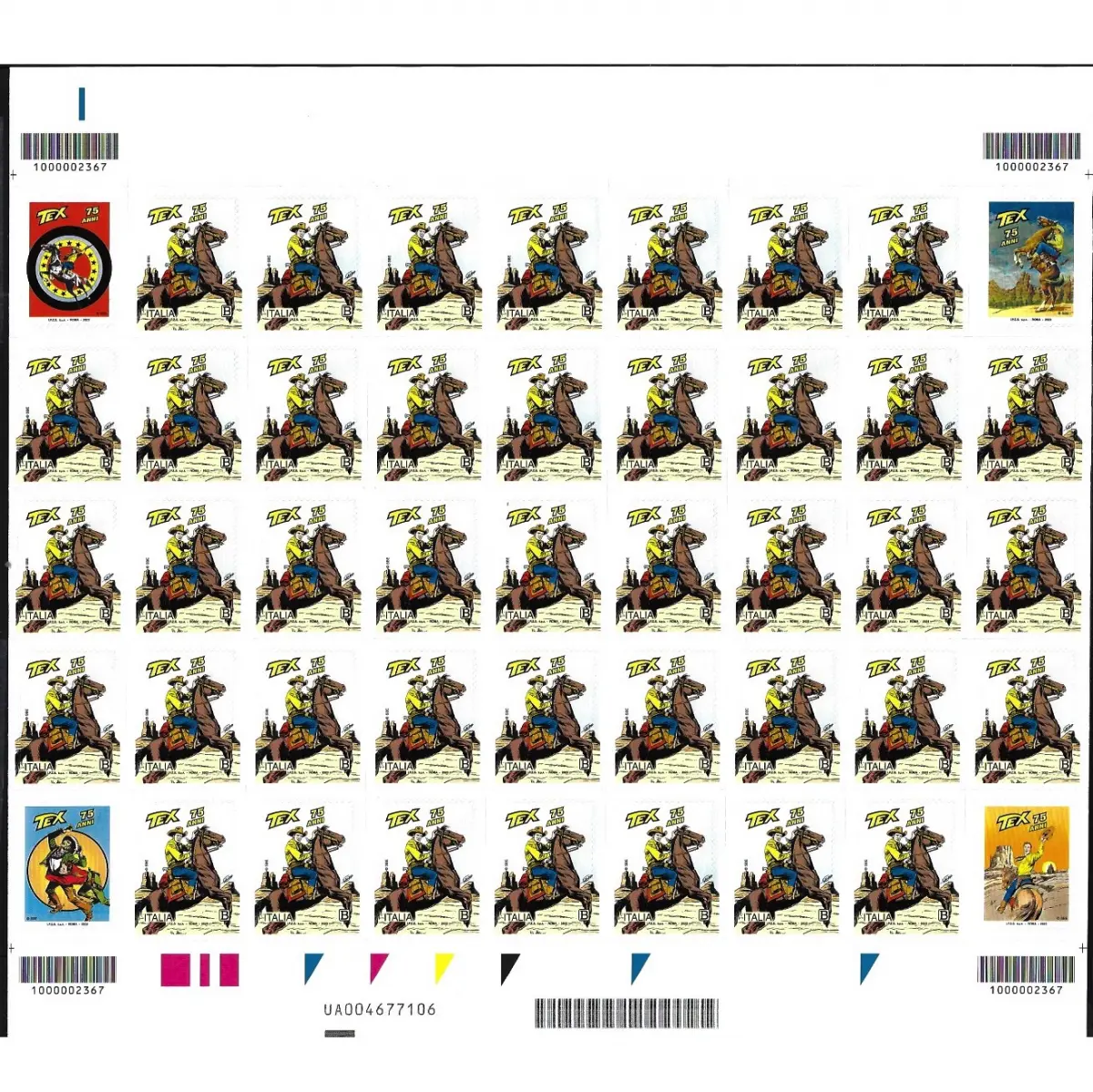 2023 Italien, Tex Willer, kompletter Bogen, 41 Werte + 4 Brieföffner - postfrisch**