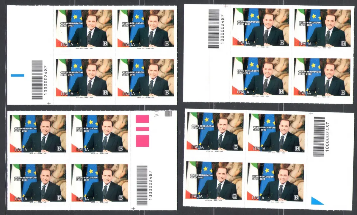 2024 Italien - Silvio Berlusconi, Viererblöcke, Barcode - postfrisch **