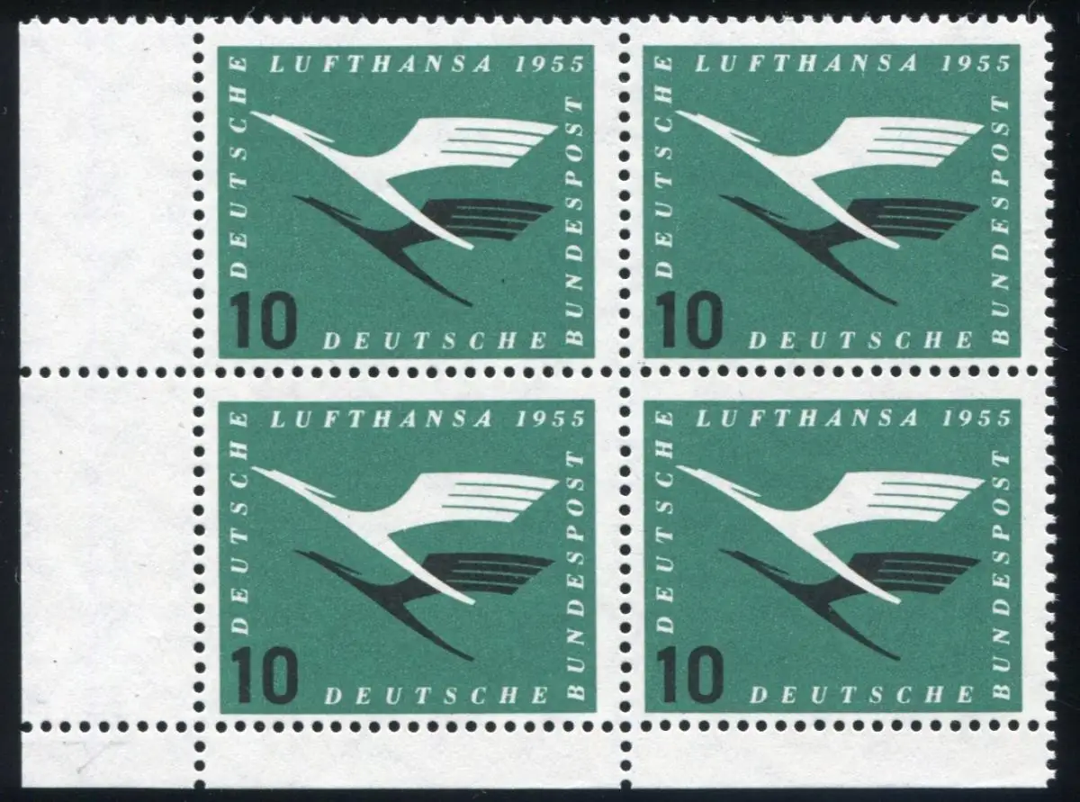 206VbI Lufthansa 10 Pf ER-Viererblock PLF I (BPP-geprüft) und PLF Kerbe im U **