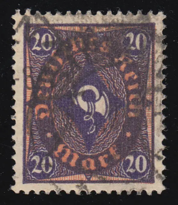 207PI Posthorn 20 Mark Plattendruck mit PLF I dicker Fuß der 2, O, gepr. Peschl