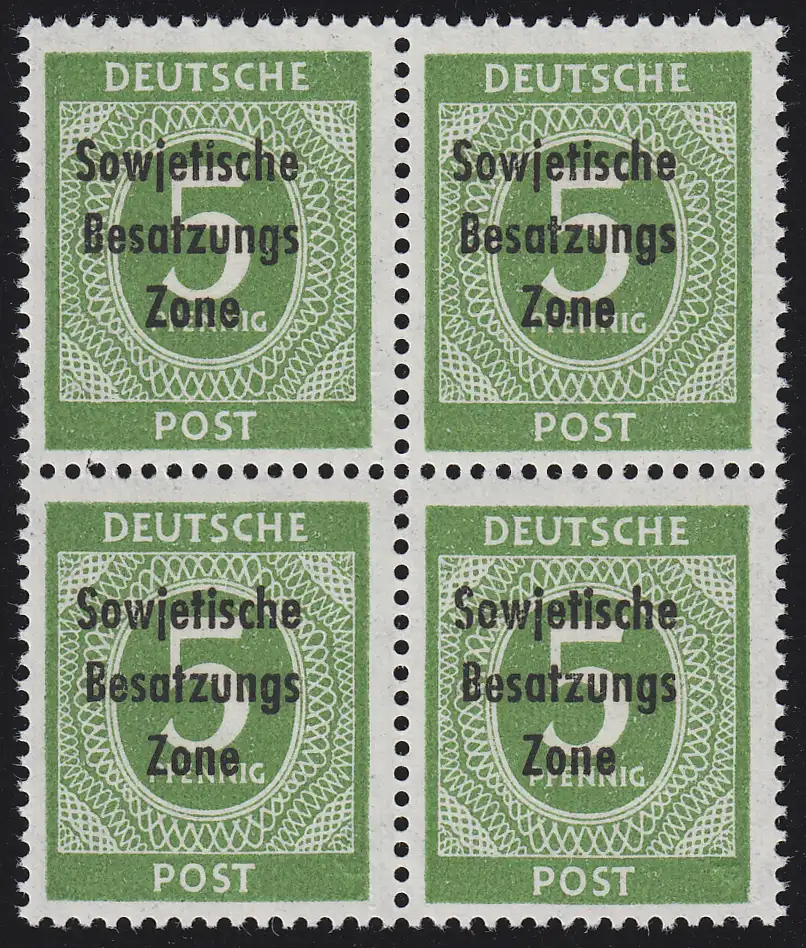 207b SBZ-Aufdruck 5 Pf. SELTENE FARBE ** im Viererblock, tiefst geprüft Paul BPP