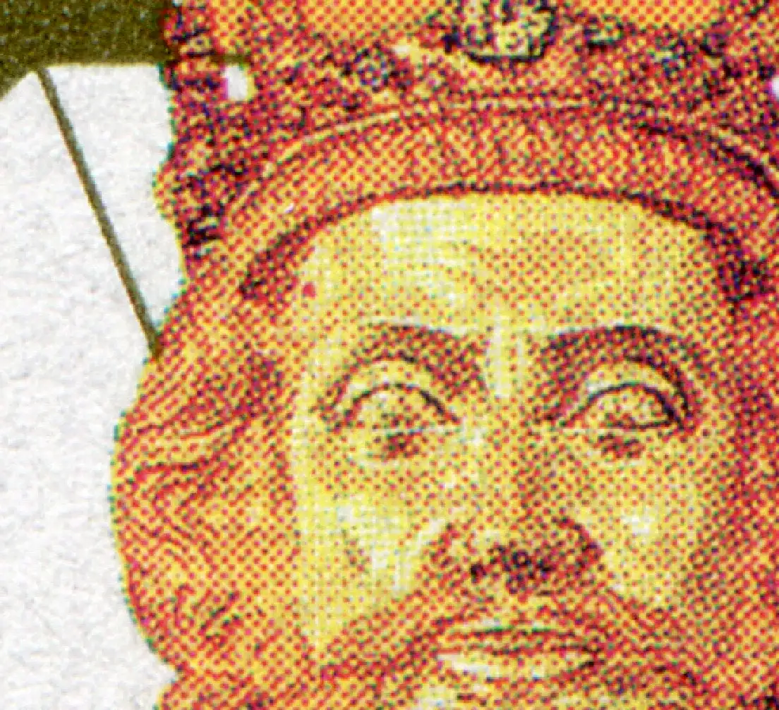 MICHEL-Plattenfehler I roter Fleck in der Stirn links über dem linken Auge