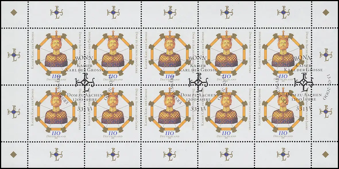 2088 Aachener Dom und Karl der Große - 10er-Bogen PLF I, Feld 8 - ESSt BONN