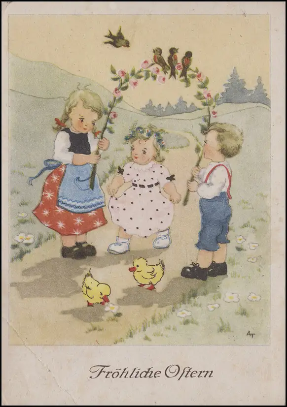 Mehrfachfrankatur 2x 6 Pf. Gerhart Hauptmann auf Oster-Postkarte mit Poststellen-Stempel nach Töpen / Hof laut Abbildung.