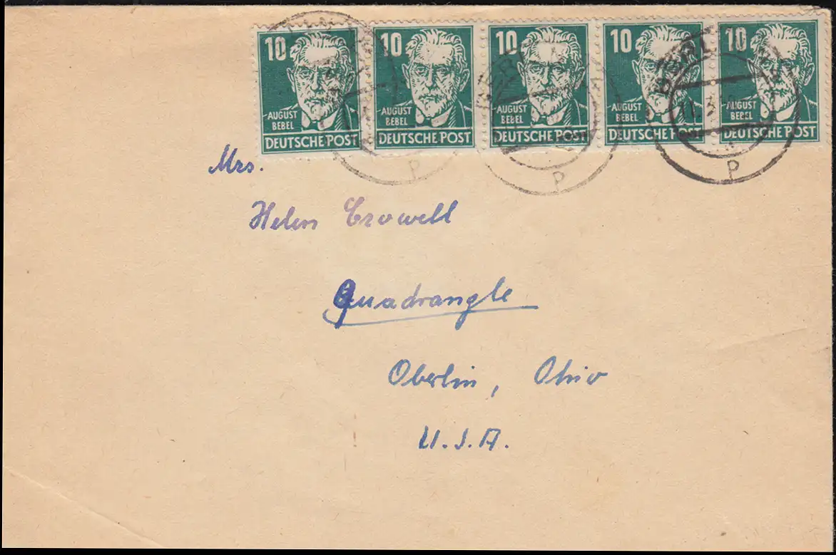 215 Bebel als MeF auf Auslandsbrief BERLIN 11.3.1950 in die USA