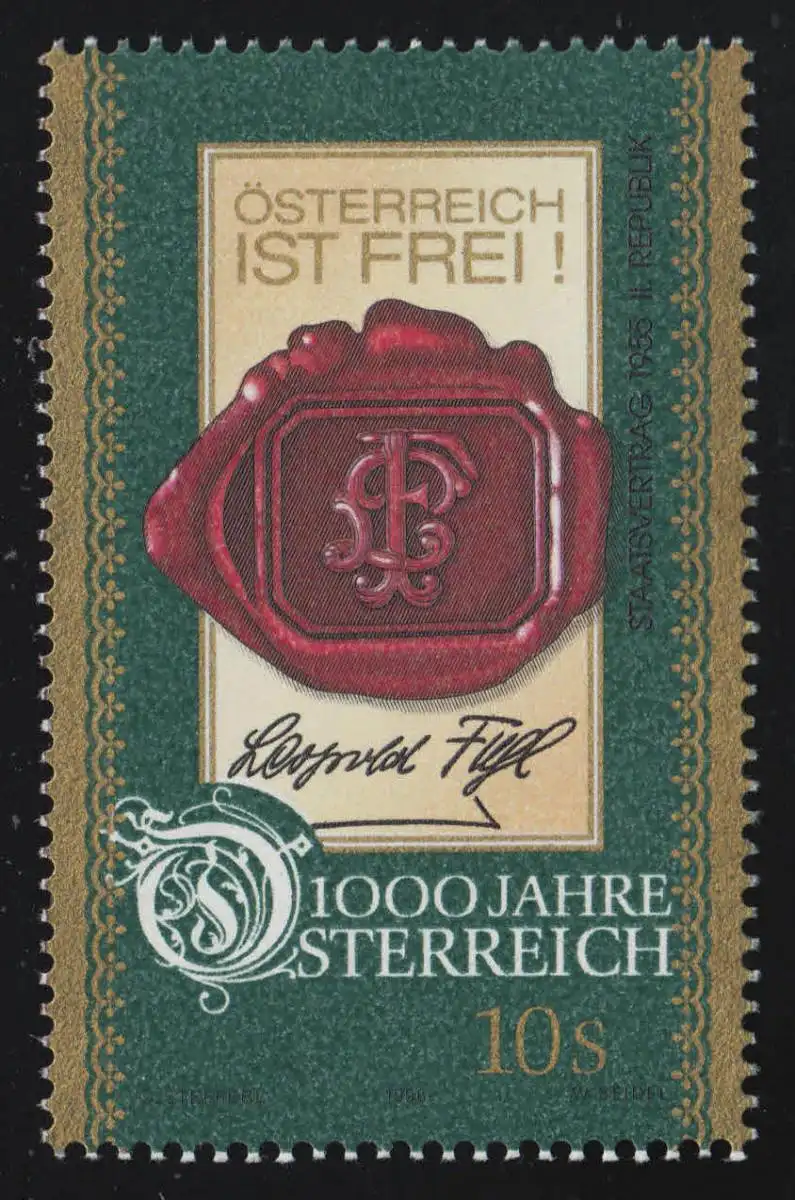 2202 1000 Jahre Österreich, II. Republik, Staatsvertrag, 10 S ** aus Block 12