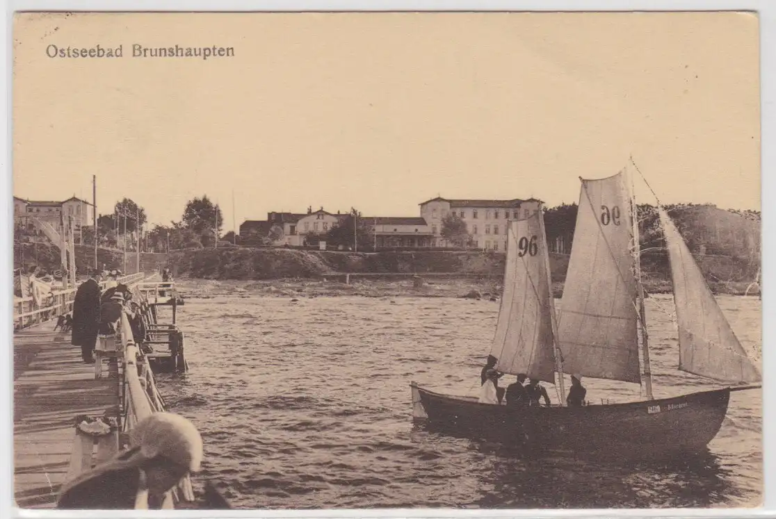 22032 Ak Ostseebad Brunshaupten Segelboot an der Seebrücke 1917