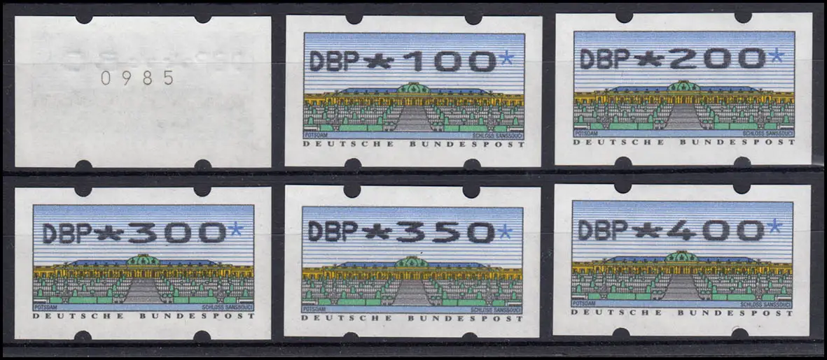 Versandstellen-Satz ab 14.9.1993 mit den Wertstufen 80, 100, 200, 300, 350, 400 - alle mit Zählnummer