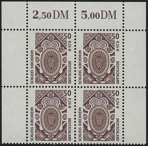 2210 SWK 50 Pf/0,26 Euro OR-Viererbl. ** postfrisch