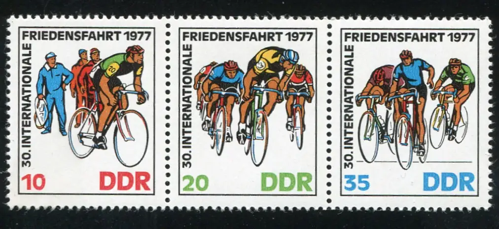 2216-2218 Radfernfahrt-Zusammendruck mit PLF 2216: Mütze defekt, Feld 4 **