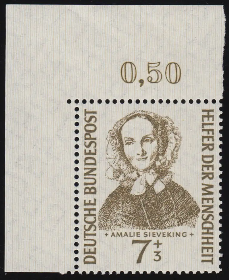 222 Helfer der Menschheit 7+3 Pf Sieveking ** Ecke o.l. 1-0