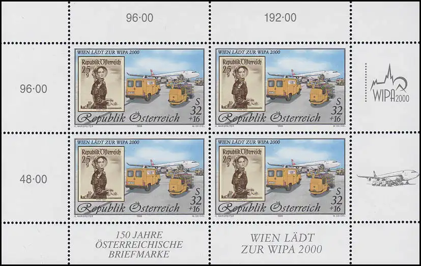 2292I Ausstellung WIPA 2000 Wien III - kompletter Kleinbogen I, postfrisch
