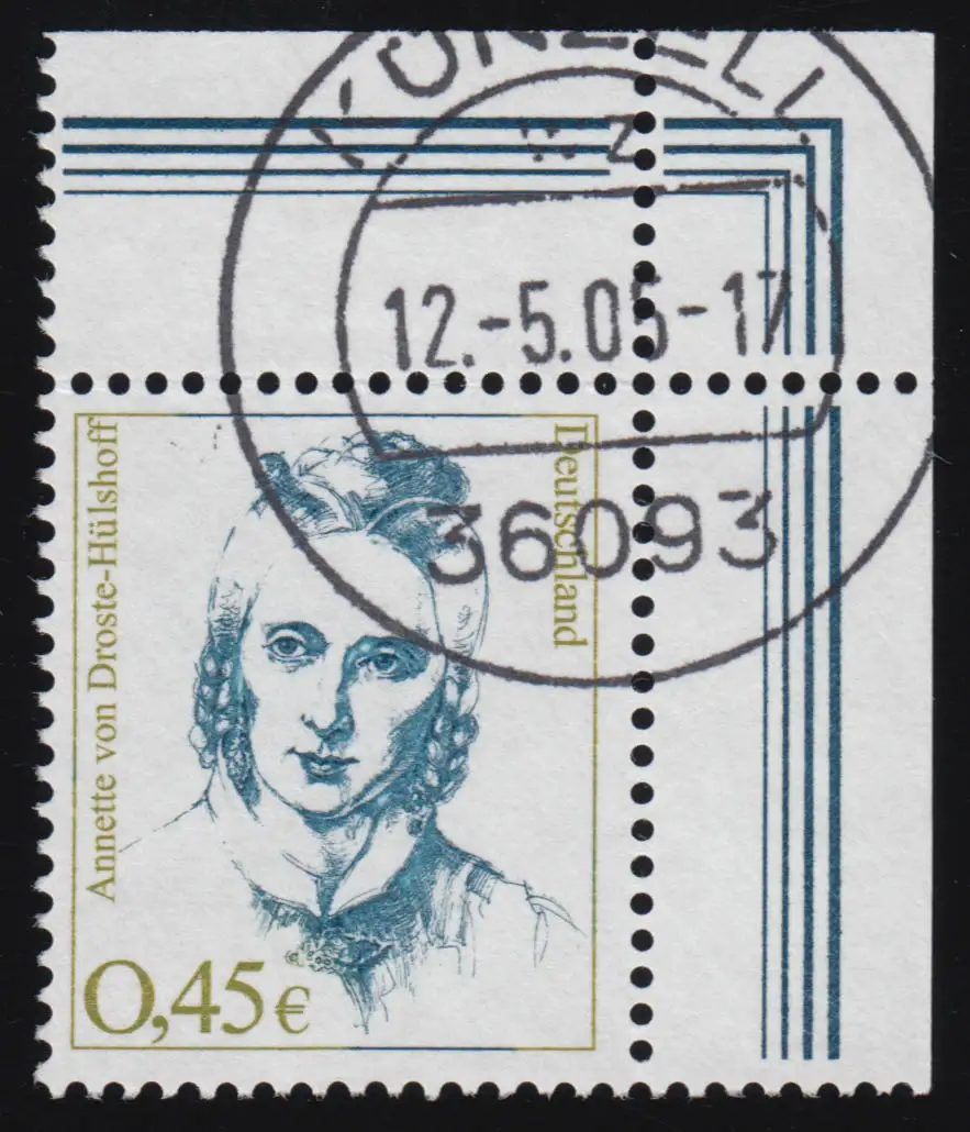 2295I Frauen 45 Cent Ecke oben rechts PLF I helle Stelle, ungefaltet, Eck-Voll-O