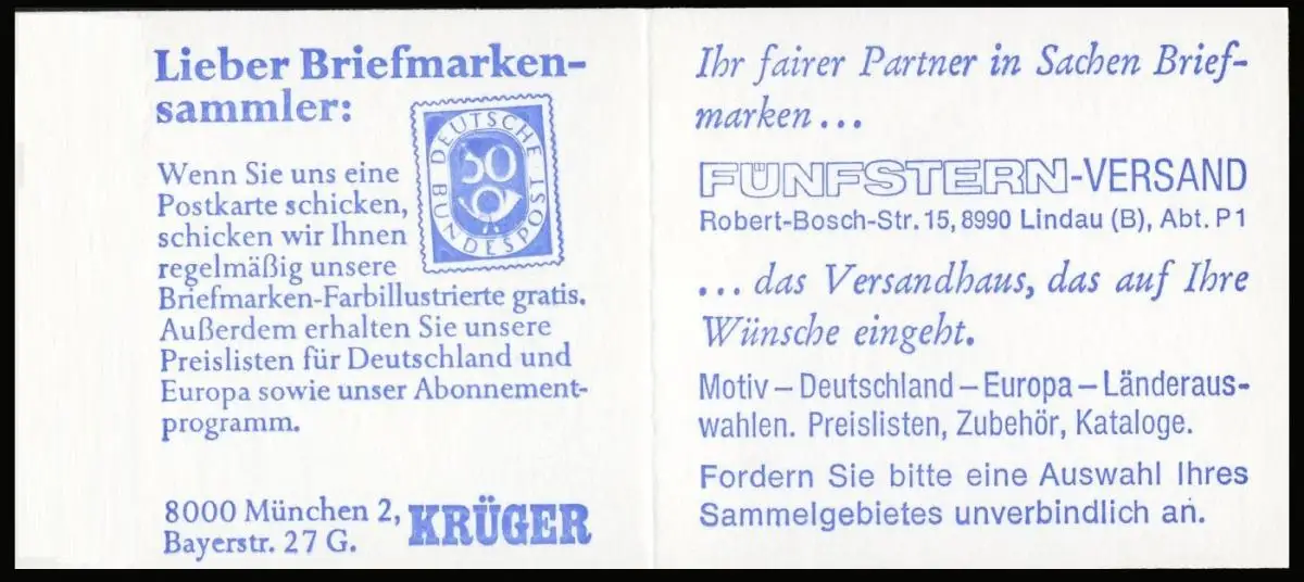 2 Adressen, Briefmarkensammler/Fünfstern; PLF IV: verlängerter Strich in Baumkrone, Feld 1