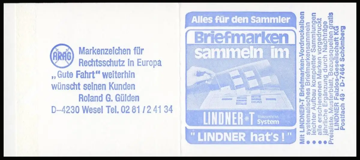 2 Adressen, ARAG / LINDNER; Variante c: i von Postwertzeichen steht rechts vom ersten l von Versandstellen