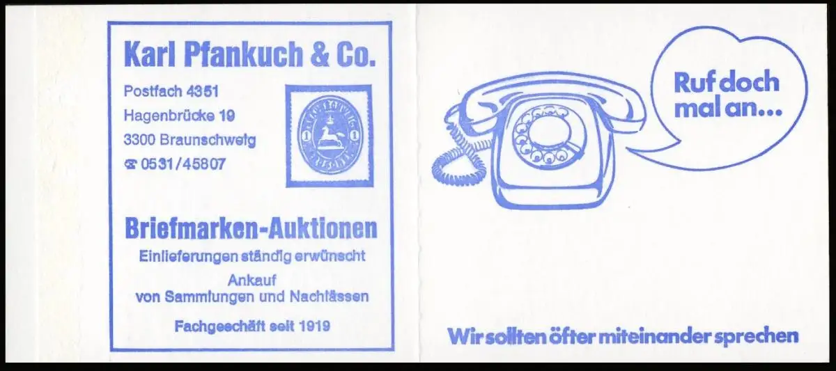 2 Adressen, Pfankuch / Ruf doch mal an ...; Variante b: i von Postwertzeichen steht genau unter dem ersten l von Versandstellen
