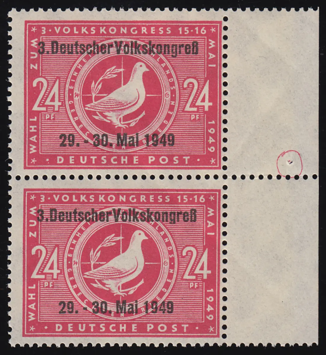 233 II Volkskongress senkr. Randpaar mit Kreis um Nadelpunkt, postfrisch **