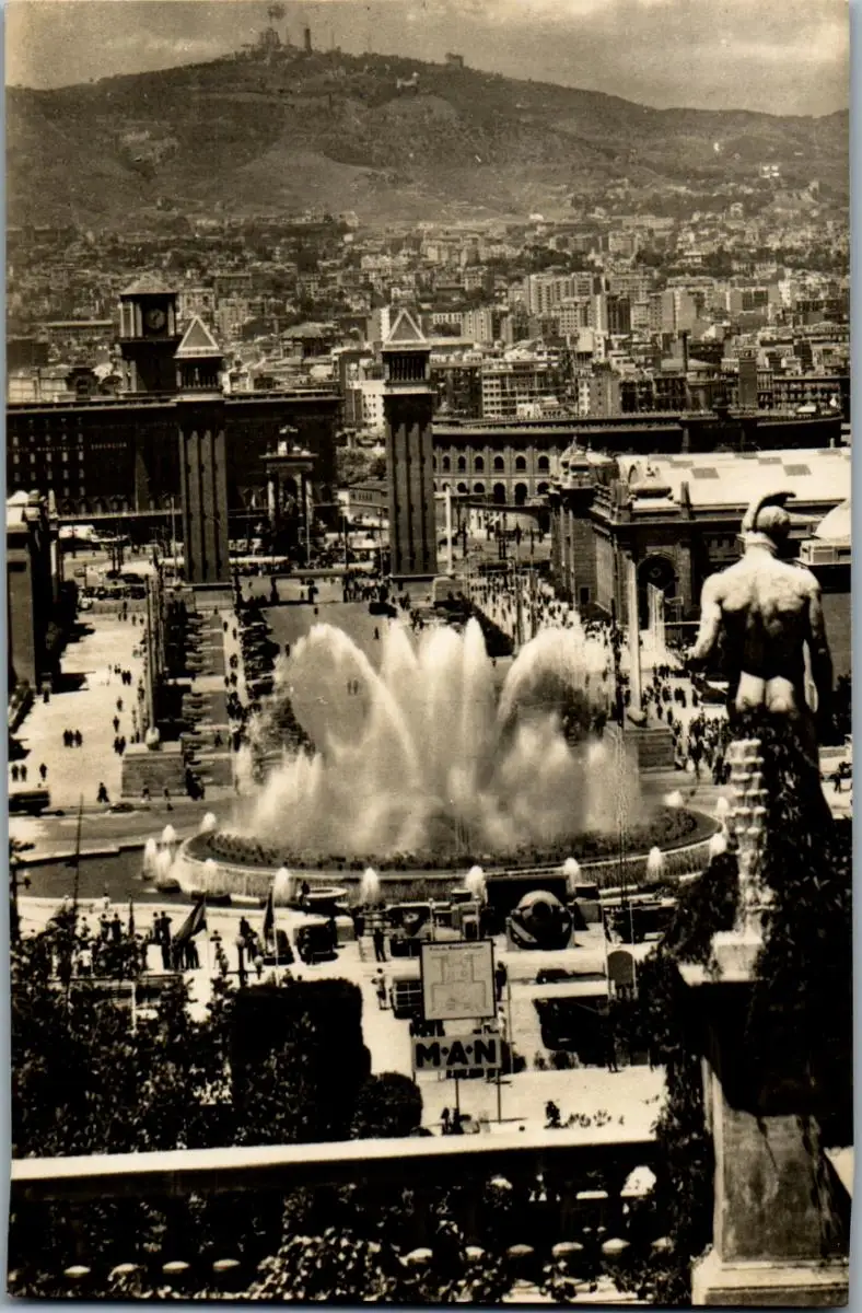 23346 - Spanien - Barcelona , Vista panoramica desde el recinto de la Exposition , Springbrunnen - gelaufen 1956