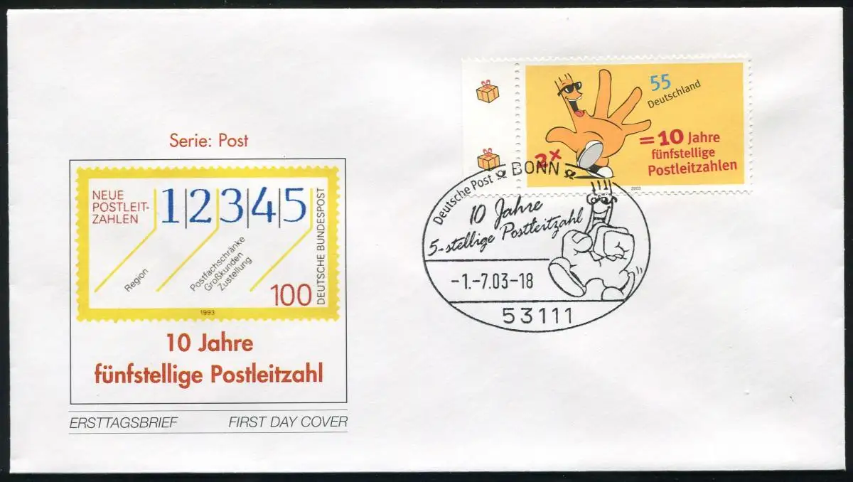 2344 Post fünfstellige Postleitzahlen FDC Bonn 10 Jahre Fünfstellige 1.7.2003