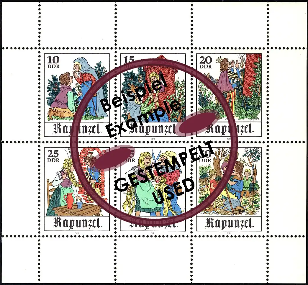 2382-2387 Märchen-Kleinbogen Rapunzel 1978, mit Tagesstempel