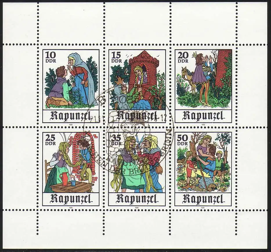 2382-2387 Märchen-Kleinbogen Rapunzel 1987: unten nicht durchgezähnt, ESSt