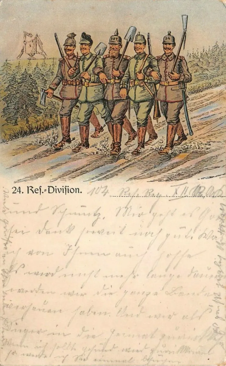 24. Reserve. Division beim Marsch Patriotika Postkarte AK 1915