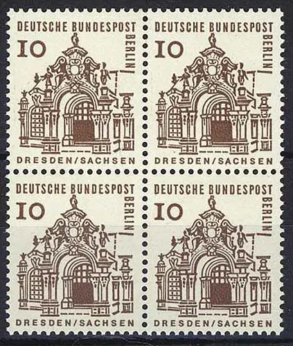242 Bauwerke klein 10 Pf Viererblock ** postfrisch