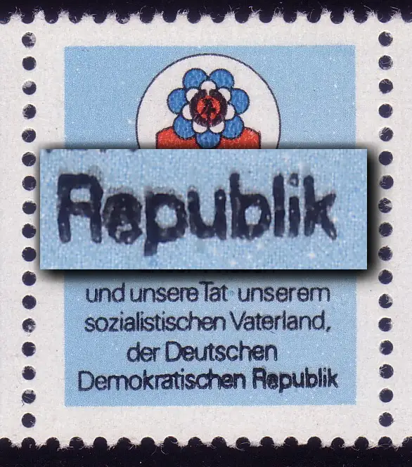 Zusammendruck mit Plattenfehler im Zierfeld: Wort Republik mit Hand graviert