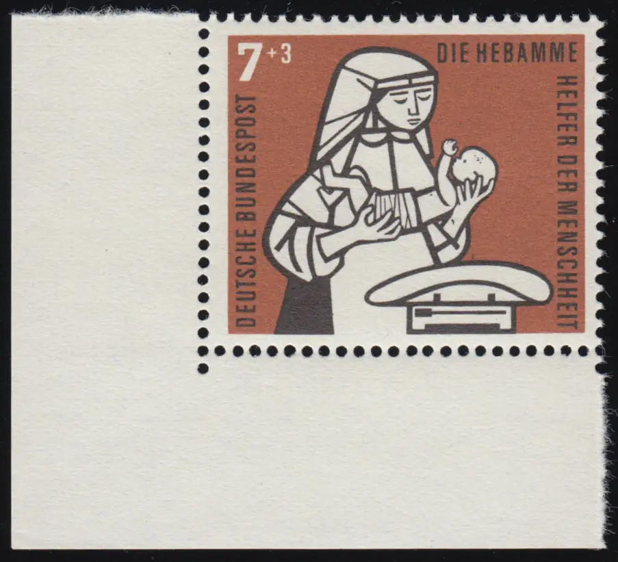 243 Kinderpflege 7+3 Pf Hebamme ** Ecke u.l. Zähnung 0-1