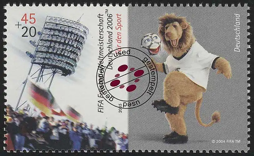2439 Sporthilfe 45+20 C Fußball-WM Goleo VI, gestempelt O