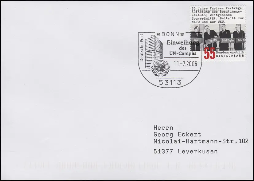 2459 Pariser Verträge, EF Brief SSt Bonn UNO Einweihung des UN-Campus 11.7.2006