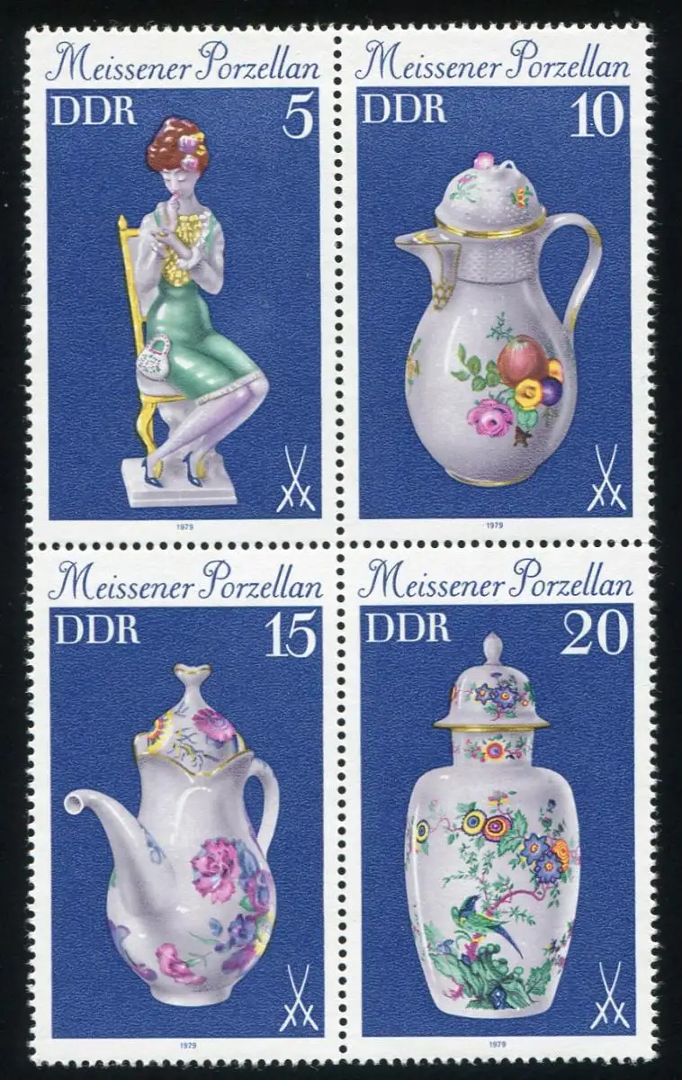 2464-2467 Porzellan-Viererblock, PLF 2467: Fleck an blauer Spitze, Feld 16 **