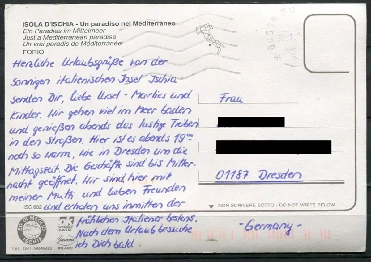 Die schwarzen Balken im Adressfeld sind auf dem Original nicht vorhanden.