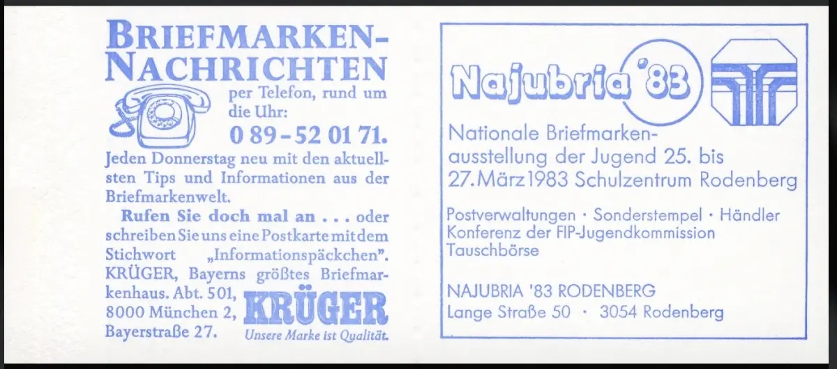 Ein Angebot in Briefmarken BRD Markenheftchen - 4.731 weitere Angebote in dieser Kategorie