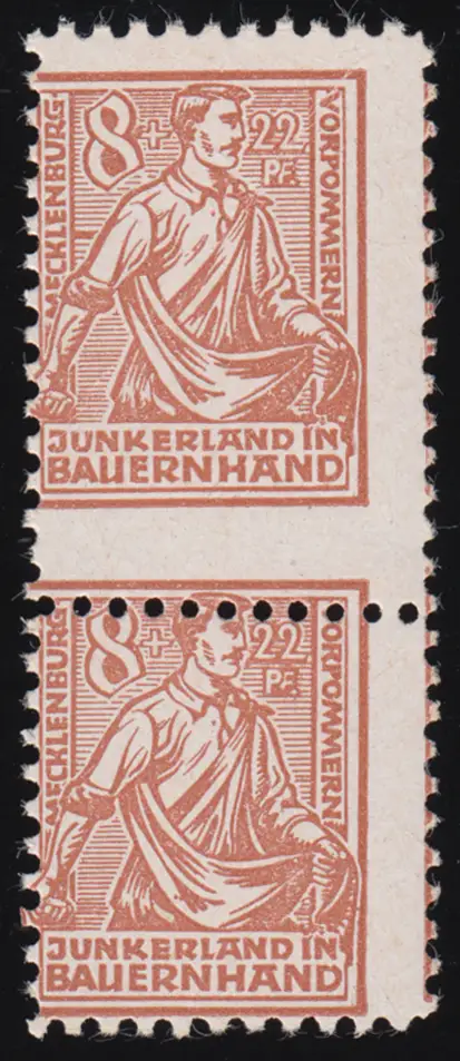 24c Bodenreform 8 Pf. seltene Farbe im verzähnten Paar, beide tiefst gpr. Kramp