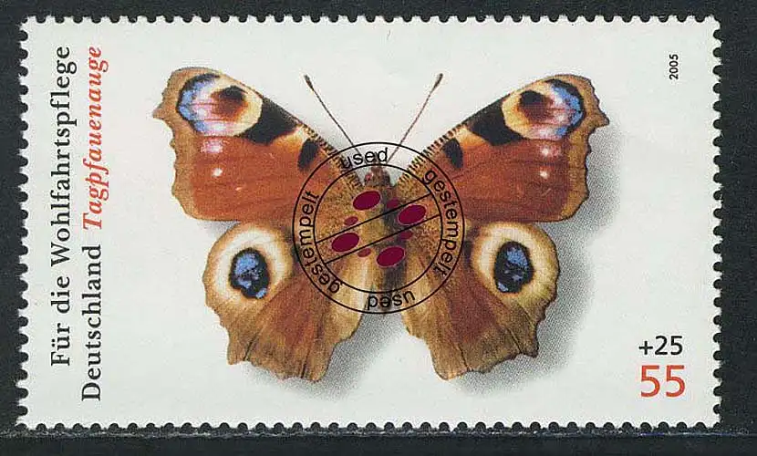 2502 Wofa Schmetterlinge 55+25 C Tagpfauenauge NASSKLEBEND, gestempelt O