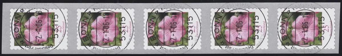 2513 Malve 25 Cent sk 5er-Streifen aus 5000er-Rolle, GERADE Nummer ET-O Bonn