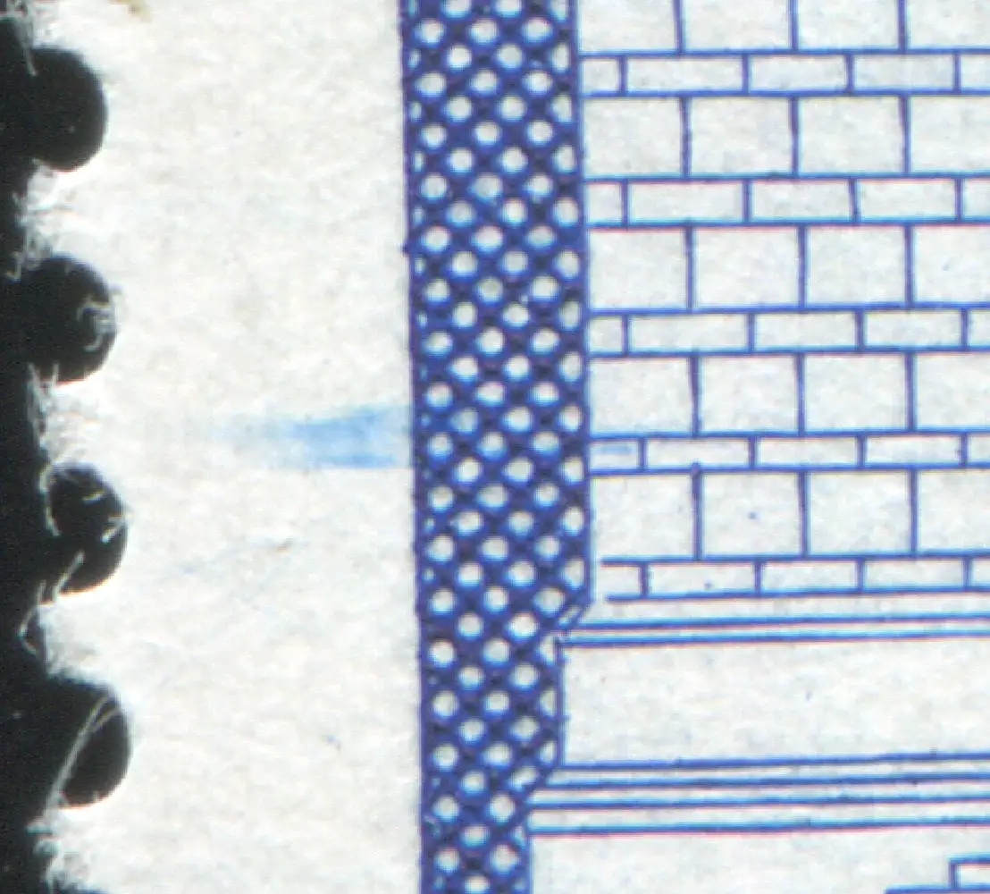 2549 Bauwerke 50 Pf - markanter Farbstrich im linken Markenrand **