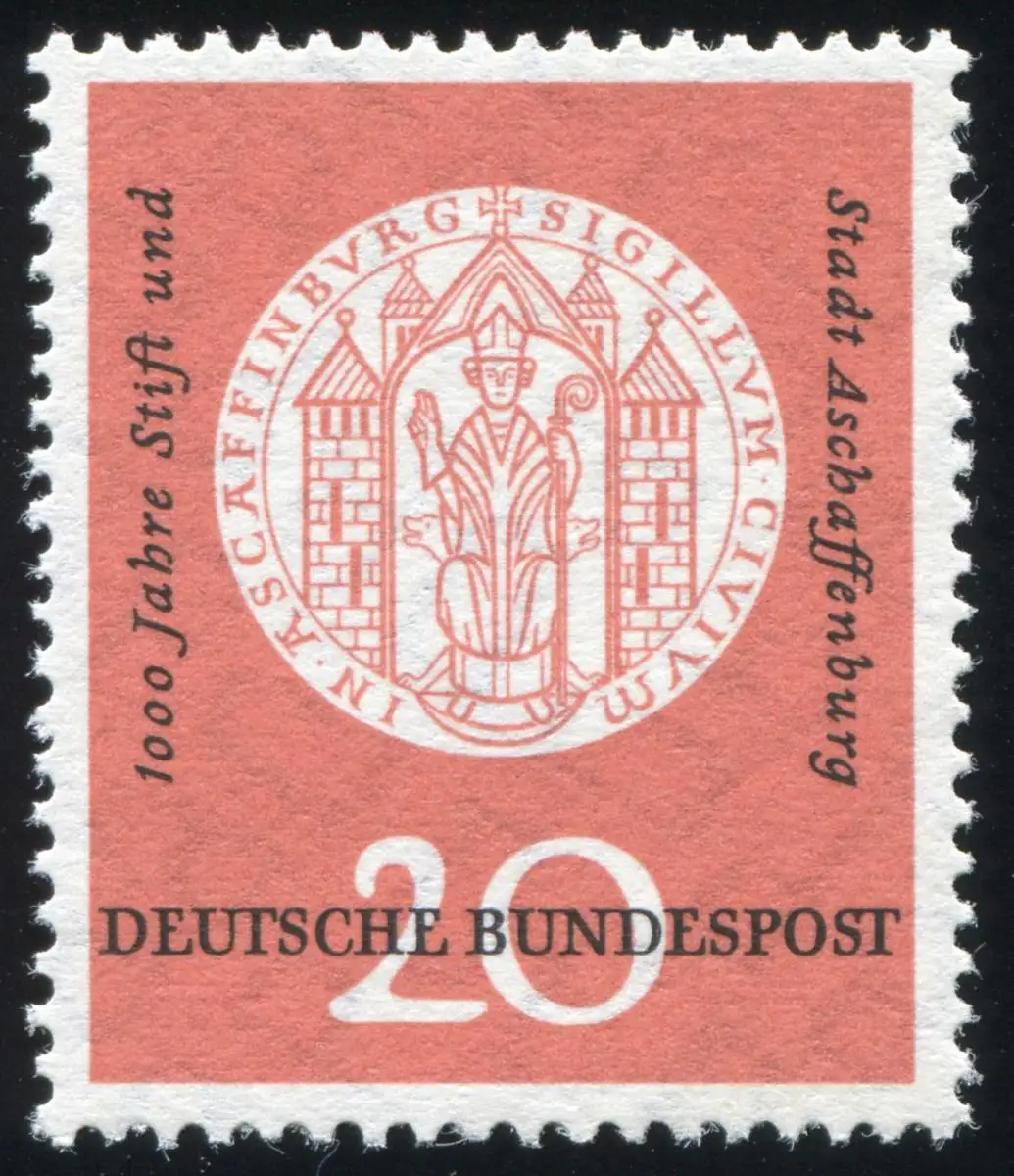 255 Aschaffenburg mit PLF: schwarzer Punkt am ersten S von BUNDESPOST, **