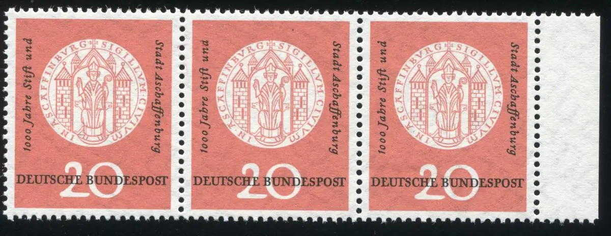 255I Aschaffenburg Rand-3er-Streifen beginnender PLF I una statt und, Feld 29 **