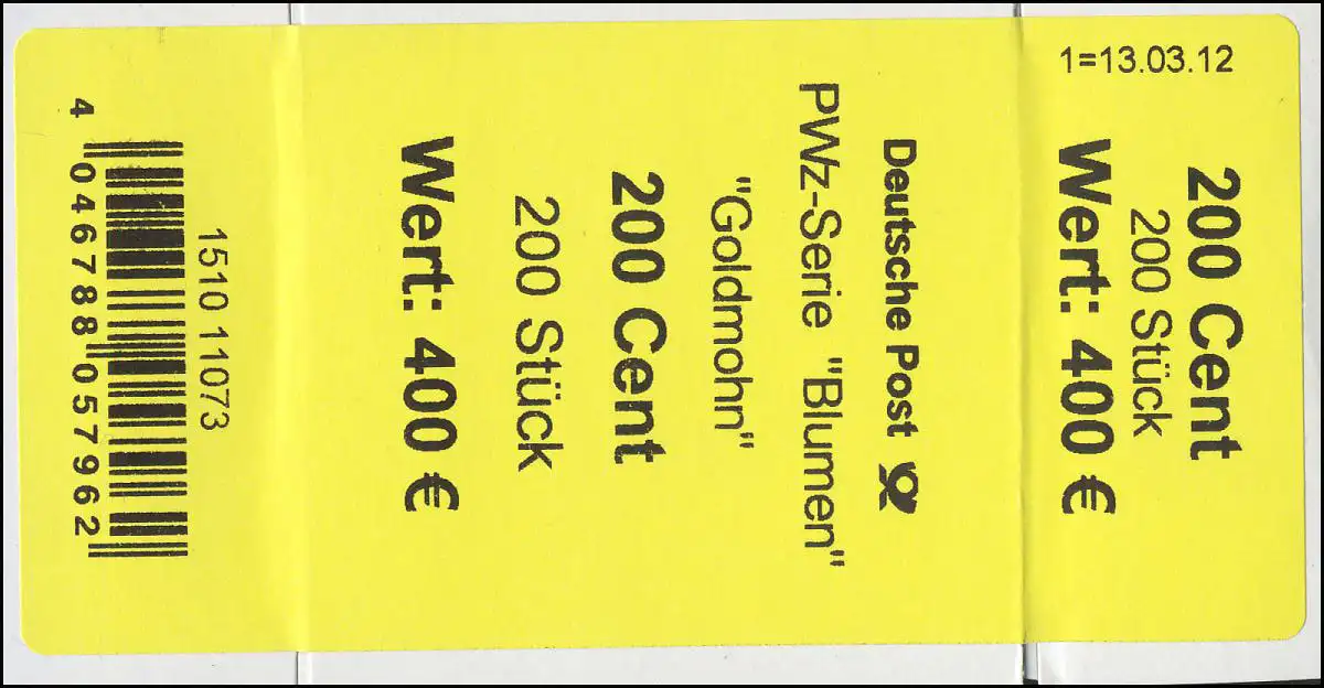 2568 Goldmohn 200 Banderole / Aufkleber, Angabe "Stück"