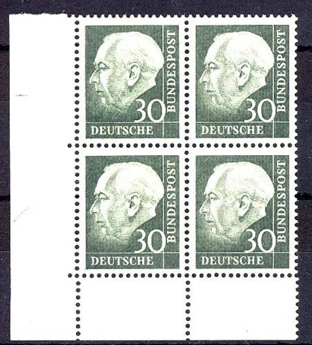 259v Heuss II 30 Pf Eck-Vbl. ul ** postfrisch