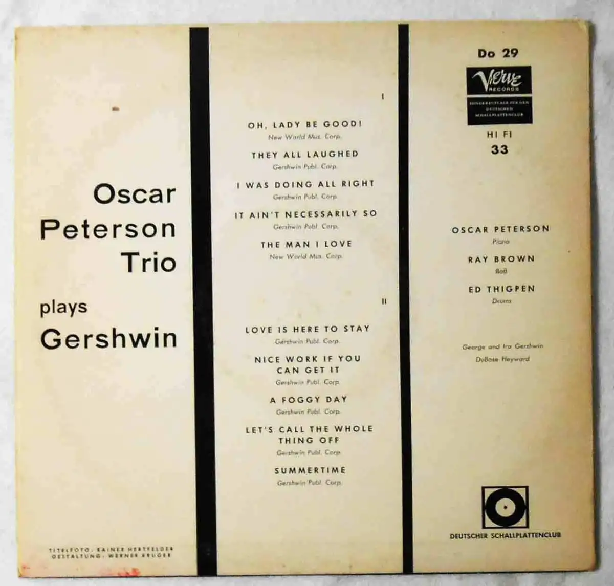 25cm LP Oscar Peterson Trio Plays Gershwin (Verve DO 29) Dt. Schallplattenclub