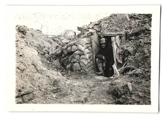 26 Fotografien 1. WK, Kriegszerstörung, Schlachtfeld, Unterstand, Soldatenleben, Biwak, Kriegsgrab, Eisenbahn u.a.